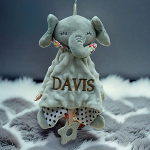 Ce doudou éléphant personnalisé combine confort, sécurité et praticité, faisant de lui le cadeau de naissance idéal. En tant que peluche personnalisée, il offre une touche spéciale qui ravira autant bébé que ses parents.