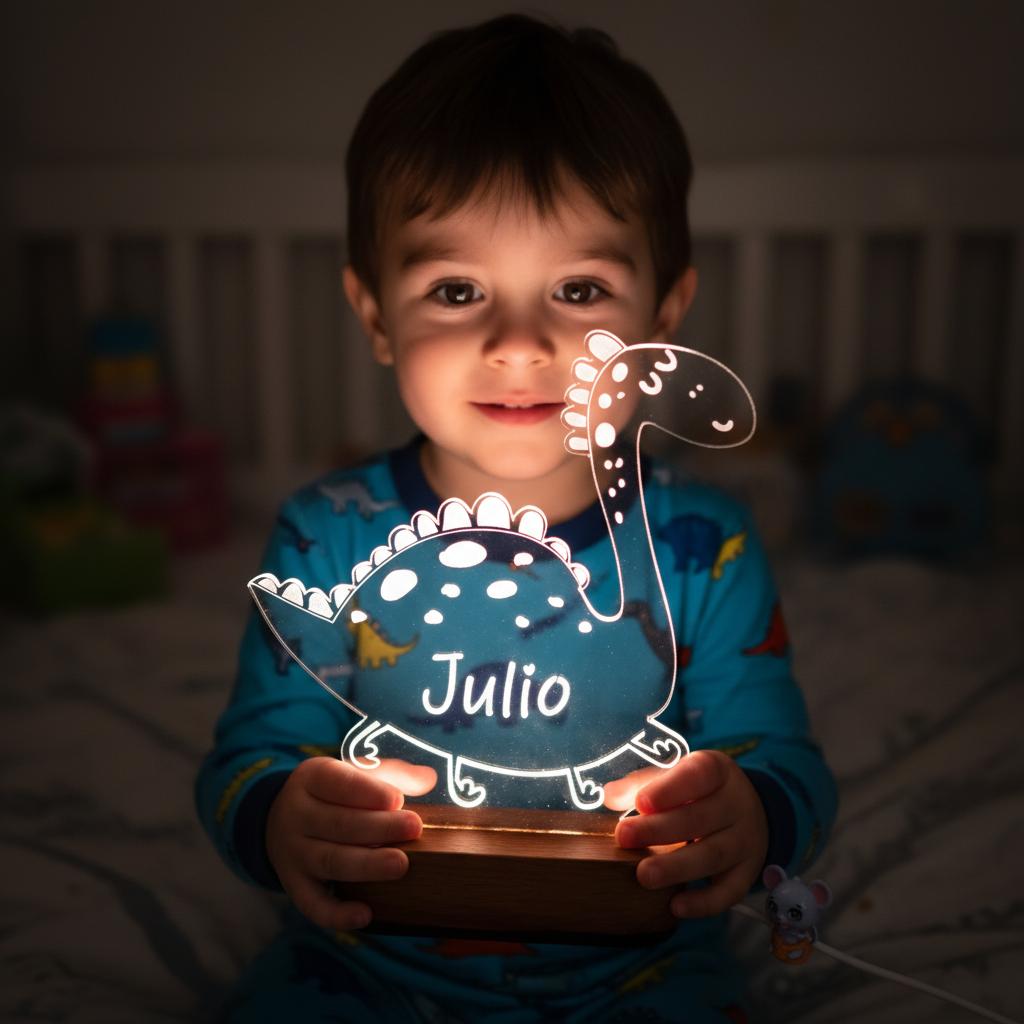 Une veilleuse dinosaure personnalisée est une lampe décorative pour enfant, conçue pour diffuser une lumière douce et rassurante. Elle est personnalisable (prénom et/ou date de naissance) afin de créer un objet unique, parfait pour accompagner le rituel du coucher.